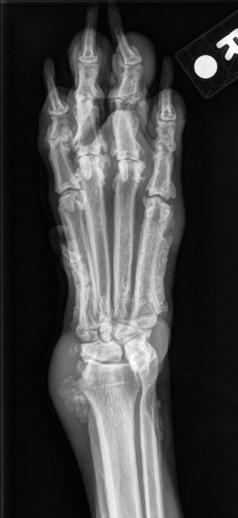 Featured Cases Featured Cases Teaching File Signalment/History: 9yr FS Large Mixed Breed Dog. Swollen carpi and paws with progressive lameness. Advance to next page to compare findings to yours Share this: Click to share on X (Opens in new window) X Click to share on Facebook (Opens in new window) Facebook Like Loading...Pages: 1 2 3 4
